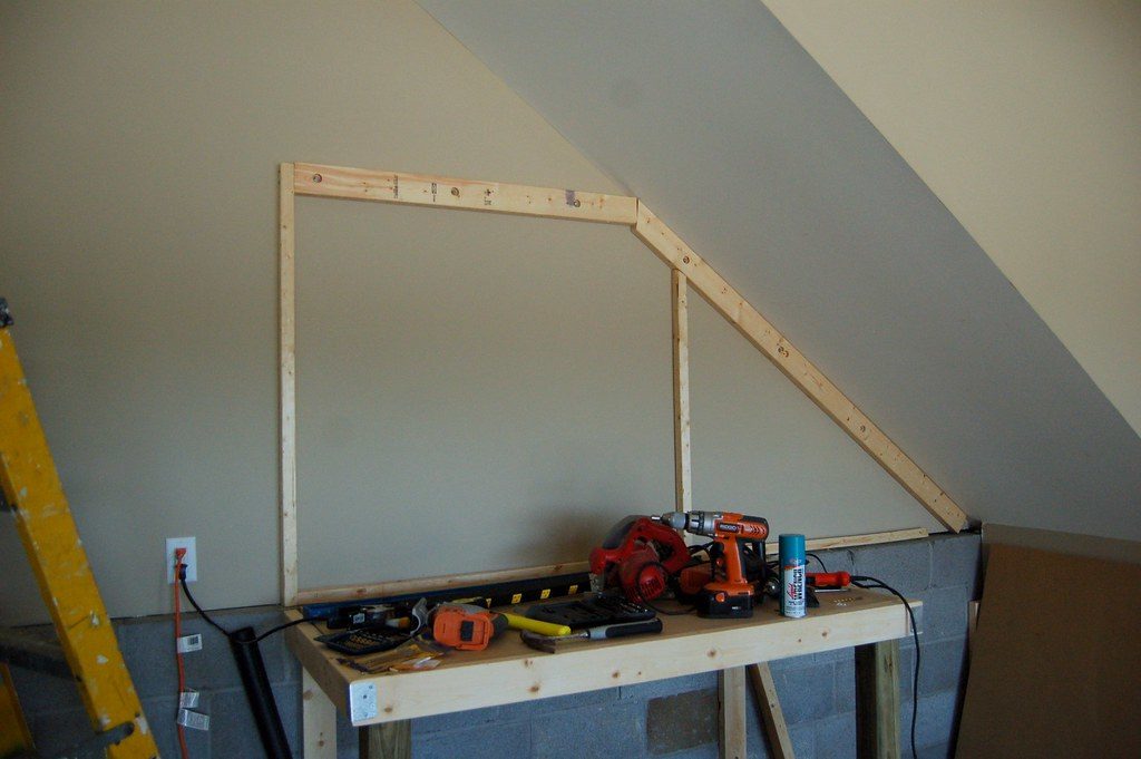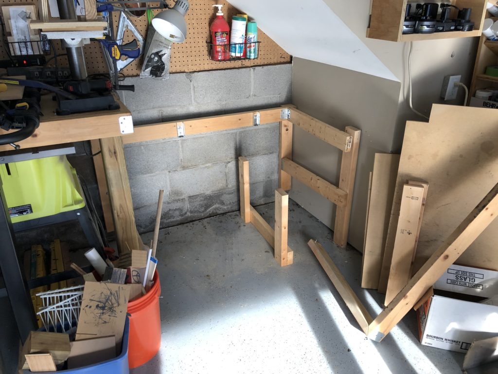 Framing out the corner of the low desk. I was hoping to maximize the space below the stairs and have a place to sit to do some work.
